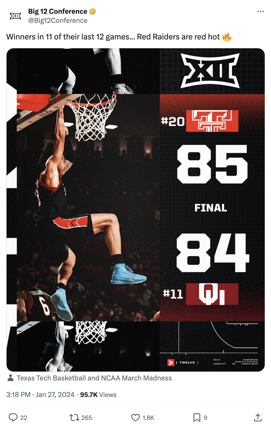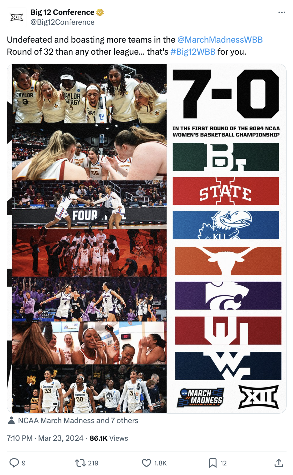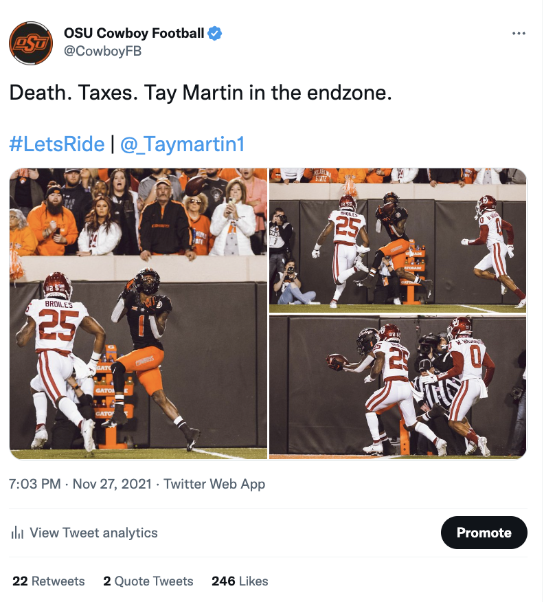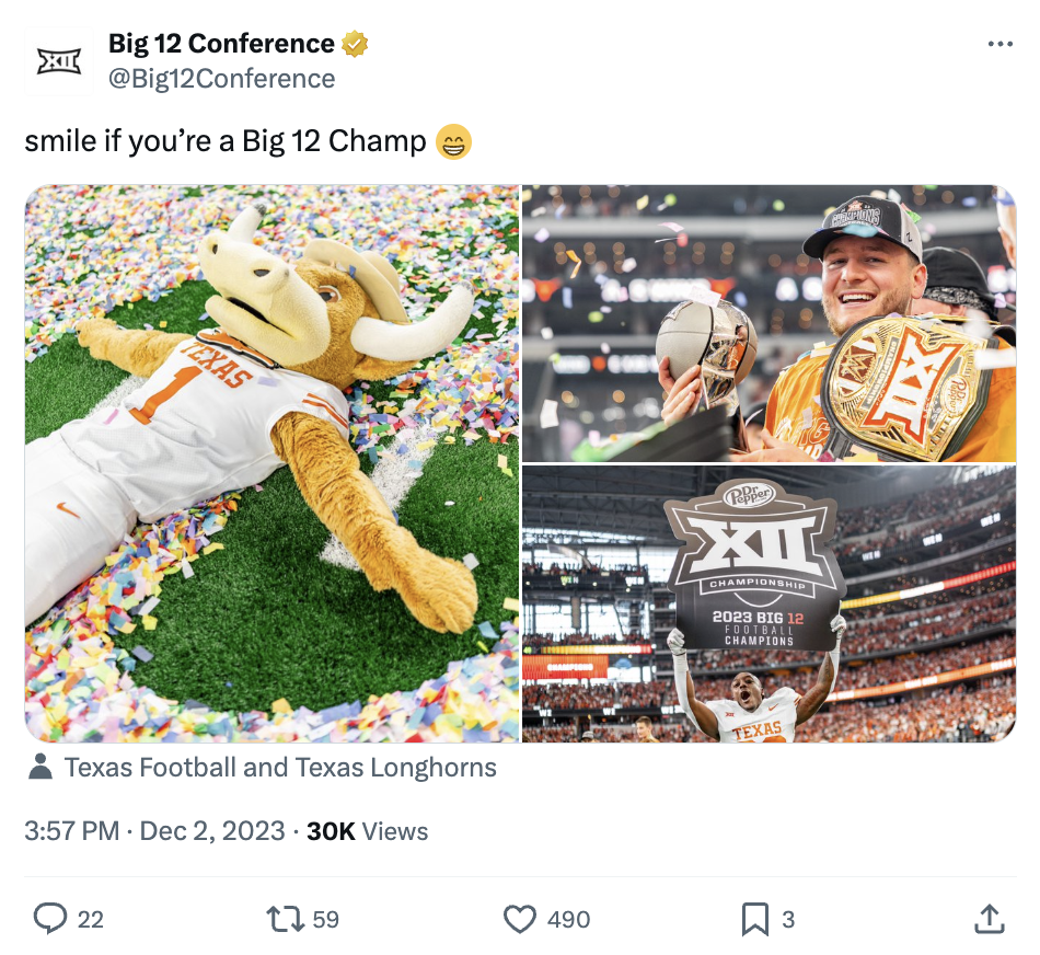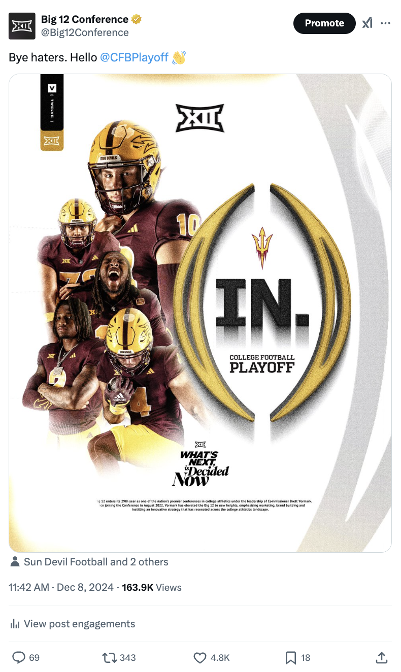 Showcased below is a collection of posts I’ve had the privilege of creating in my roles with the Big 12 Conference, the College Football Playoff and Oklahoma State softball, football and men's basketball. Linked above is my Gondola profile, with a more in-depth look at the social media content and engagement metrics I’m responsible for.